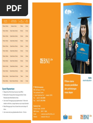BNI LIFE SMART EDUCATION. Produk Asuransi Jiwa Individu yang memberikan manfaat program perencanaan keuangan yang menyediakan Dana Pendidikan Anak berupa Tahapan Biaya Pendidikan dari TK sampai dengan Perguruan Tinggi, Uang Saku selama Kuliah dan Perlindungan Asuransi. Perbedaan Tabungan Pendidikan Anak dan Asuransi Pendidikan Anak. Terdapat beberapa perbedaan yang mendasar pada Tabungan Pendidikan dan Asuransi Pendidikan, diantaranya seperti yang dibahas dibawah ini. Tabungan Pendidikan Anak: Bunga yang diberikan lebih kecil dari tabungan regular bank. Hasil tabungan hanya sekitar 3-6%, sehingga Anda ... Manfaat asuransi akan tetap diberikan kepada nasabah walaupun nasabah memiliki pertanggungan asuransi sejenis pada lembaga asuransi lain (dapat double klaim). Nilai manfaat pertanggungan asuransi hingga Rp 1,5 Milyar (BNI Tapenas IDR) atau USD 150,000 (BNI Tapenas USD) per rekening Nasabah dengan nilai maksimal Rp 6 Milyar (BNI Tapenas IDR ...