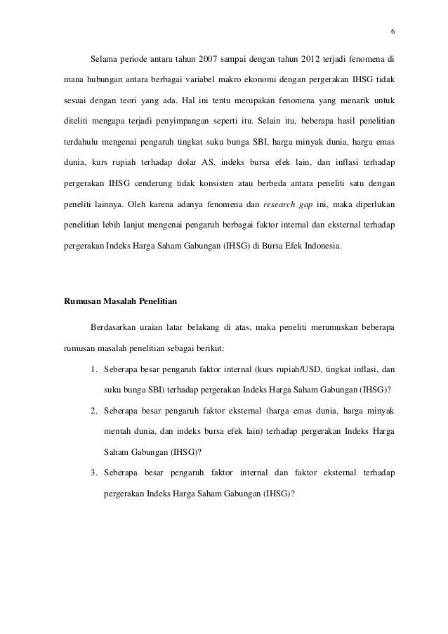 5. Faktor Lain. Selanjutnya, pergerakan harga saham juga dipengaruhi oleh berbagai faktor eksternal lainnya, baik yang berkaitan dengan pasar maupun tidak berkaitan. Pasar juga bisa dipengaruhi oleh kondisi ekonomi, sosial, politik, terorisme, perang, bencana alam dan lain sebagainya. Itulah lima hal yang mempengaruhi pergerakan saham pada ...