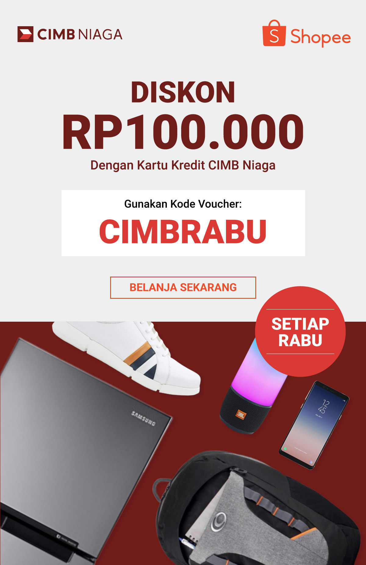 Syarat dan Ketentuan Promo CIMB Niaga. Dapatkan potongan harga sebesar Rp. 20.000, - dengan minimal transaksi Rp. 200.000,- khusus pembayaran Kartu Kredit CIMB Niaga di Klik Indomaret menggunakan kupon CIMB20RBCC. Promo hanya berlaku di tanggal 25 Juli-31 Desember 2021, Mulai pukul 10.00 WIB.