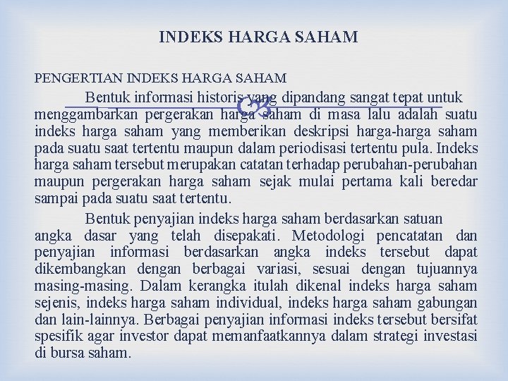 Pengertian indeks harga saham gabungan