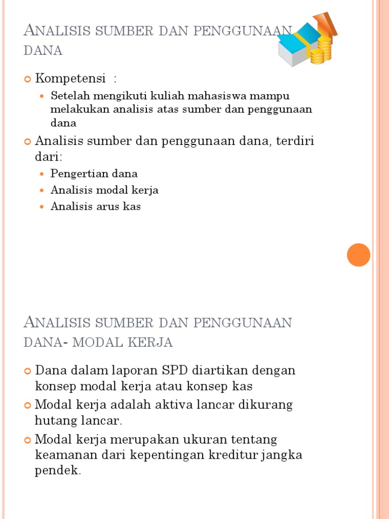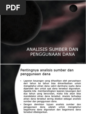 Mar 15, 2020 ... Analisis sumber dan penggunaan dana adalah salah satu alat untuk mengetahui kondisi finansial menyangkut bagaimana dana diperoleh dan ...