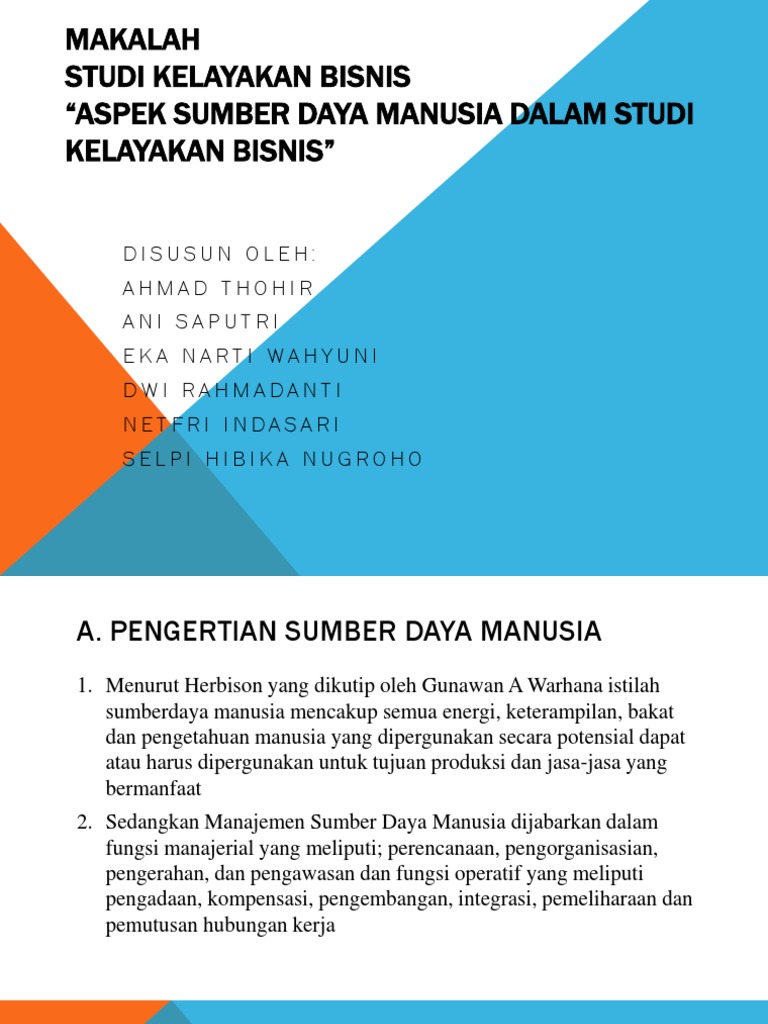 Studi Kelayakan Bisnis Aspek Manajemen Sumberdaya Manusia ...