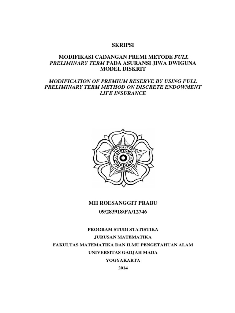 Skripsi tentang asuransi jiwa pdf. Full PDF Package Download Full PDF Package. This Paper. A short summary of this paper. 35 Full PDFs related to this paper. Read Paper. CONTOH Skripsi Regresi Linier ... kumpulanjurnal.download Assosoasi Ahli Manajemen Asuransi Indonesia (AAMAI) merupakan satu-satunya organisasi bagi para ahli manajemen perasuransian di Indonesia, baik asuransi jiwa maupun asuransi umum/kerugian, yang diakui oleh Pemerintah Repu-blik Indonesia, sebagaimana dinyatakan dalam Surat Keputusan Menteri Keuangan R.I. nomor 425/KMK.06/2003. Contoh Skripsi Ilmu Komunikasi – Tema skripsi ilmu komunikasi sangat beragam karena komunikasi adalah ilmu yang selalu berkembang. Oleh karenanya mahasiswa butuh referensi judul dan contoh skripsi tentang ilmu komunikasi yang lengkap untuk dijadikan penelitian terdahulu.