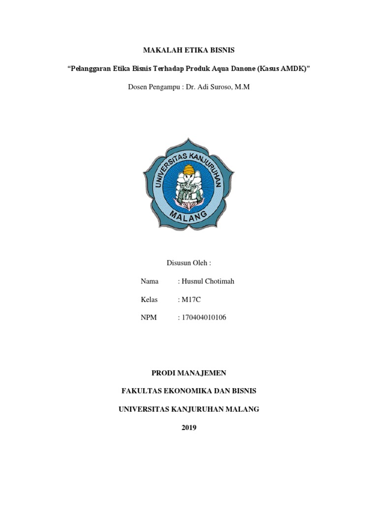 Analisis etika bisnis pt. TIRTA INVESTAMA (AQUA-DANONE)Подробнее. Etika Bisnis - UAS Contoh Kasus Semester 1Подробнее. Kasus Pelanggaran Etika Bisnis Bidang Produksi-PT.