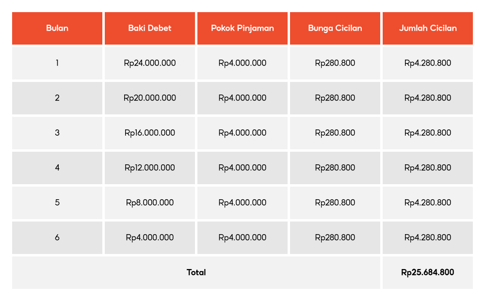 Bunga Pinjaman Bank BRI: Simulasi Kredit dan Kalkulator Simulasi pinjaman Bank BRI Untuk simulasi kredit BRI, Kamu bisa memanfaatkan kalkulator simulasi kredit flat di bawah ini untuk mengetahui besar cicilan dan juga bunga untuk pinjaman jangka pendek, seperti Kredit Tanpa Agunan Briguna, kredit mobil dan motor KKB BRI, dan pinjaman online BRI Ceria. Simulasi Pinjaman Kredit Tanpa Jaminan BRI Berikut Ini Misal, anda berhutang Rp 100.000.000,- dengan bunga flat 12% per tahun, maka setiap bulan bunganya adalah Rp 1.000.000,- Rumus bunga tetap Bunga per bulan = Jumlah pinjaman x Suku bunga per tahun / 12 Jadi, Total Bunga = Jumlah pinjaman x (Suku bunga per tahun / 12) x Lama meminjam dalam bulan Kredit Multi Guna BRI Refinancing memberikan kemudahan Promo BRI - Contoh Simulasi Pinjaman KTA BRI Sebagai contoh jika Anda melakukan pinjaman BRiguna sebesar Rp 50.000.000,, dengan jangka waktu 1 tahun (12 bulan), dan mendapatkan suku bunga (flat 1,49%, maka estimasi cicilan per bulan adalah Rp 4.911.667. Mari kita coba lakukan simulasi lainnya. Contoh Anda mau melakukan pinjaman KTA sebesar Rp 100 juta dalam jangka waktu 4 tahun.