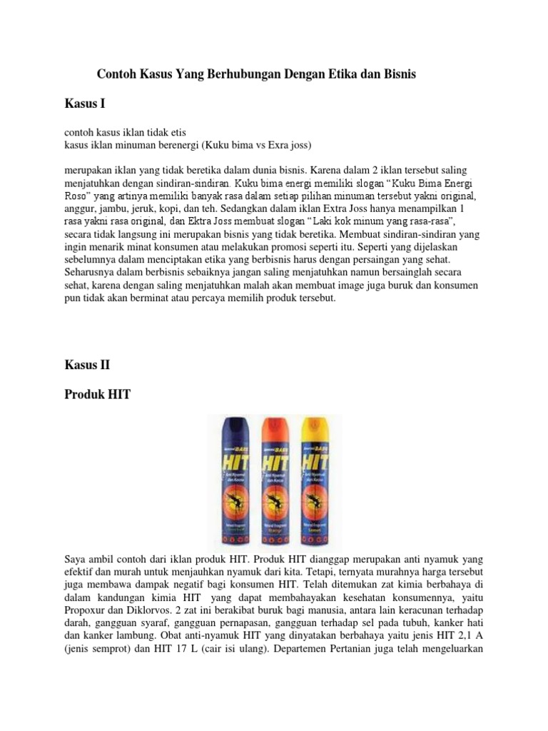 Contoh kasus dalam etika bisnis - muhammadmaulanablog Pelanggaran etika bisnis pada albothyl oleh perusahaan PT PHAROS Pendahuluan Berita-berita mengenai pelanggaran etika bisnis mendorong ketertarikan untuk menelusuri lebih lanjut faktor-faktor yang mendorong dan dampak yang diakibatkan. Etika bisnis merupakan aspek moral dalam menjalankan bisnis.