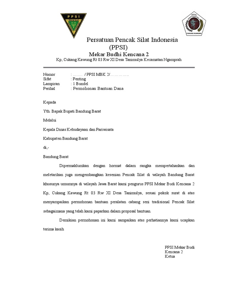 7 Contoh Proposal Pengajuan Sponsor Menarik & Benar ... Cara Membuat Proposal Pengajuan Sponsor. 1. Menggunakan bahasa yang sopan, jelas, lugas dan detail. 2. Menulis proposal yang berbeda dengan proposal orang lain. 3. Memberikan lampiran atau kolom khusus untuk menulis keinginan perusahaan. 4. Menunjukan profesionalitas dan totalitas kepada pihak sponsor. Cara Membuat Proposal Pengajuan Dana Secara Baik dan Benar ... Cara membuat proposal pengajuan dana dijelaskan melalui bagian-bagian sebagai berikut. Advertisement 1. Halaman Judul Pada halaman judul dicantumkan judul usulan proyek, alamat dan lokasi proyek, serta nama organisasi dan rangkuman singkat dari proposal. Rangkuman terdiri dari dua hingga tiga kalimat saja. Cara Membuat Proposal Bantuan Dana (Hibah & Sponsorship ... 2 Tips Membuat Proposal Bantuan Dana 2.1 Tawarkan Keuntungan 2.2 Perlihatkan Performa 2.3 Menjunjung Keterbukaan 2.4 Bersikap Profesional 3 Struktur Penulisan Proposal Bantuan Dana 3.1 Pendahuluan 3.2 Latar Belakang 3.3 Maksud dan Tujuan 3.4 Anggaran Dana 3.5 Penutup 4 Contoh Proposal Pengajuan Dana 5 Kesimpulan dan Penutup PDF Kerangka Proposal Permohonan Bantuan Dana Permohonan Bantuan Dana Contoh \u0026 Cara Membuat Surat Permohonan Bantuan Dana ¦¦ Tutorial Microsoft Word Proposal Permohonan Dana Pembangunan Musholla contoh surat permohonan bantuan dana Isi Proposal Kegiatan Cara Membuat Proposal Bantuan Perikanan Perseorangan CARA DAPAT MODAL Bisnis 11M? TANPA RIBA, TANPA BUNGA, TANPA JAMINAN! CHICKEN ...