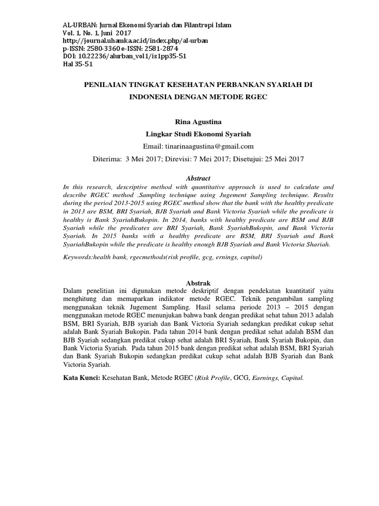 The Analisis Pengaruh Penilaian Kesehatan Bank Melalui ... Populasi penelitian ini adalah bank umum syariah, yang terdaftar di Indonesia dari 2016 hingga 2020. Sampel diperoleh berdasrkan metode purposive sampling, dengan jumlah sampel sebanyak 12 BUS. Perolehan hasil penelitian ini menyatakan bahwa kesehatan bank memiliki pengaruh signifikan pada nilai perusahaan dibuktikan dengan sekor P-Value ... Summary of Decision of the Board of Directors of ... Penilaian Tingkat Kesehatan Bank Perkreditan Rakyat dan Bank Pembiayaan Rakyat Syariah Indonesia: New regulation on Investment-Linked Insurance Products Cookies On Di Awal 2022 Ojk Sudah Terbitkan 10 Regulasi | Berita ... - Peraturan Otoritas Jasa Keuangan Republik Indonesia Nomor 3/POJK.03/2022 tentang Penilaian Tingkat Kesehatan Bank Perkreditan Rakyat Dan Bank Pembiayaan Rakyat Syariah. - Peraturan Otoritas Jasa Keuangan Republik Indonesia Nomor 2/POJK.03/2022 tentang Penilaian Kualitas Aset Bank Umum Syariah dan Unit Usaha Syariah. Jurnal Mantik | Jurnal Mantik This study was conducted to determine the soundness of BNI Syariah Bank when reviewed using CAMEL analysis. As stated in Article 3 of Bank Indonesia Regulation Number 9/1/PBI/2007, the financial ratios used to measure the health of a bank are Capital, Asset, Management, Earning, and Liquidity (CAMEL). The research method used is the quantitative method, with data analysis of CAR, KAP, NPM, REO ...